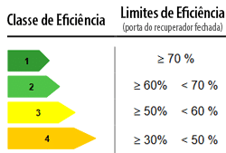 Existem 4 classes de eficiência de acordo com as normas CE de classificação de equipamentos de calor, sendo que na classe 4 temos um menor rendimento do equipamento, por sua vez na classe 1 temos um maior rendimento do equipamento.