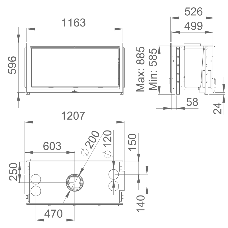 Diametro saida de fumos: Ø 200mm