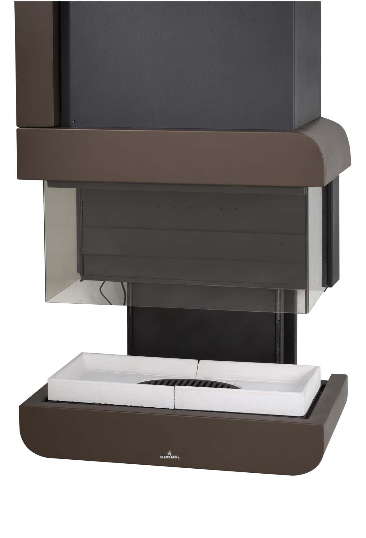 Interior com placa traseira construída em fundição e base em cerâmica refratária