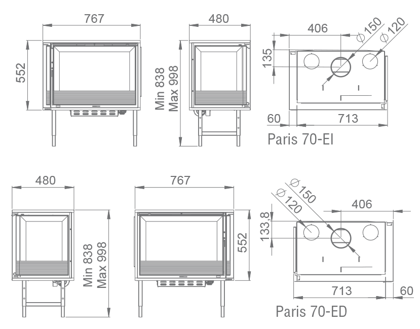 Saída de fumos: Ø 150 mm