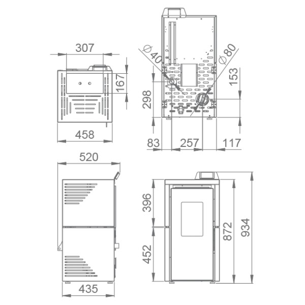 Saída de fumos: Ø 80 mm